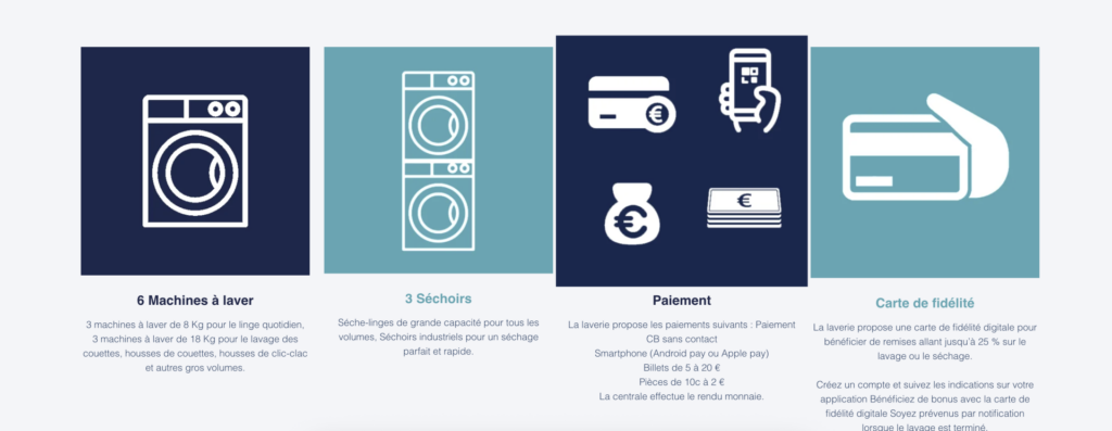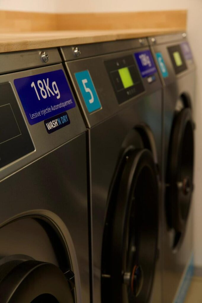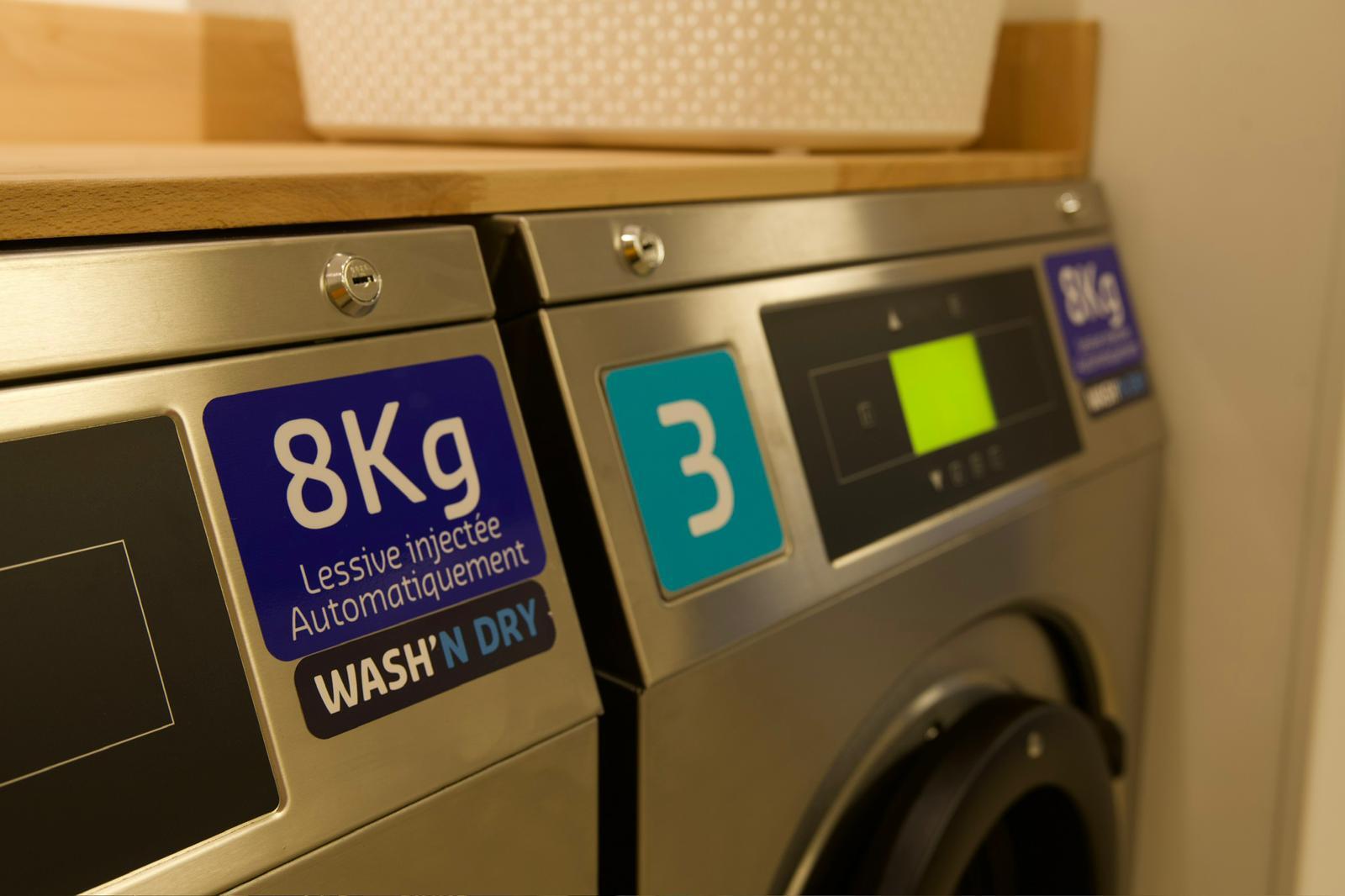 Elle dispose de machines à laver et de sèche-linge de dernière génération, adaptées aussi bien au linge courant qu’aux gros volumes comme les couettes ou couvertures.